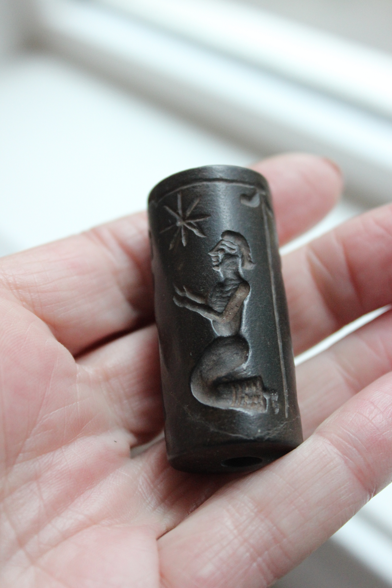 A note on these Ancient Seal Bead Amulets: One of the fascinating aspects of ancient jewelry is the fusion of form and function. This is particularly true for seal bead amulets, which were as much a practical tool as they were ornamental. As the name suggests, these items were usually bead-like in shape, often with at least one flat side that was meticulously engraved with symbolic designs or scripts. The possession of a seal bead amulet was a symbol of status and power, signifying a high social position in ancient societies. They were more than just indicators of rank, though. These intricately carved seals also held a spiritual or protective function. They were believed to serve as talismans or amulets, providing protection to their owners. This is a testament to the spiritual and supernatural beliefs prevalent in these ancient societies, where objects could be imbued with protective or beneficial properties.