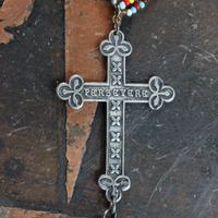 The Best Colors Necklace with Handstrung Multi Strand Seed Bead Chain,Perseverance Cross,Seed Bead Tassel,Antique Fleur de Lis Button