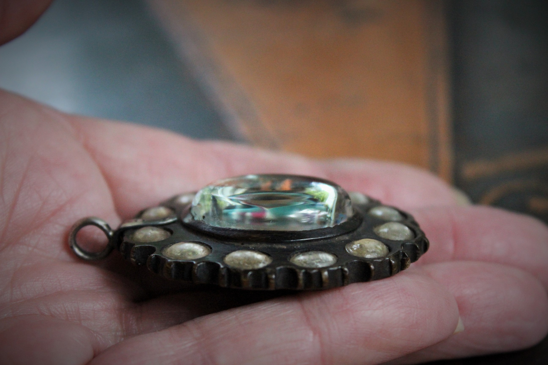 One side of the central relics appears to have a more recent glass covering - the other appears original - and both are very clear.