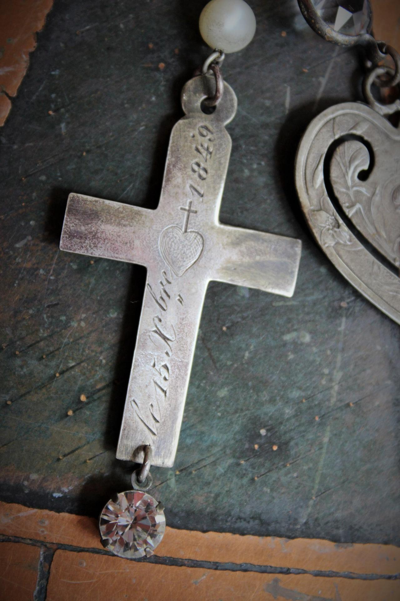 Antique Sterling Engraved Nun's Cross (not a contemporary cast) engraved with "Lucie Freville" and "Le 15th Nvbre 1849" (The 15th of November)