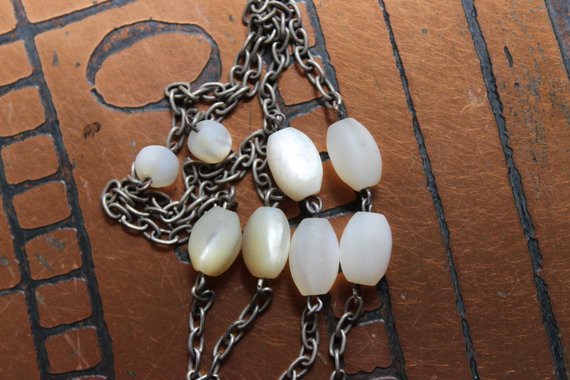 Necklace measures 18 1/2 inches long and total central drop length is 6 1/2 inches long