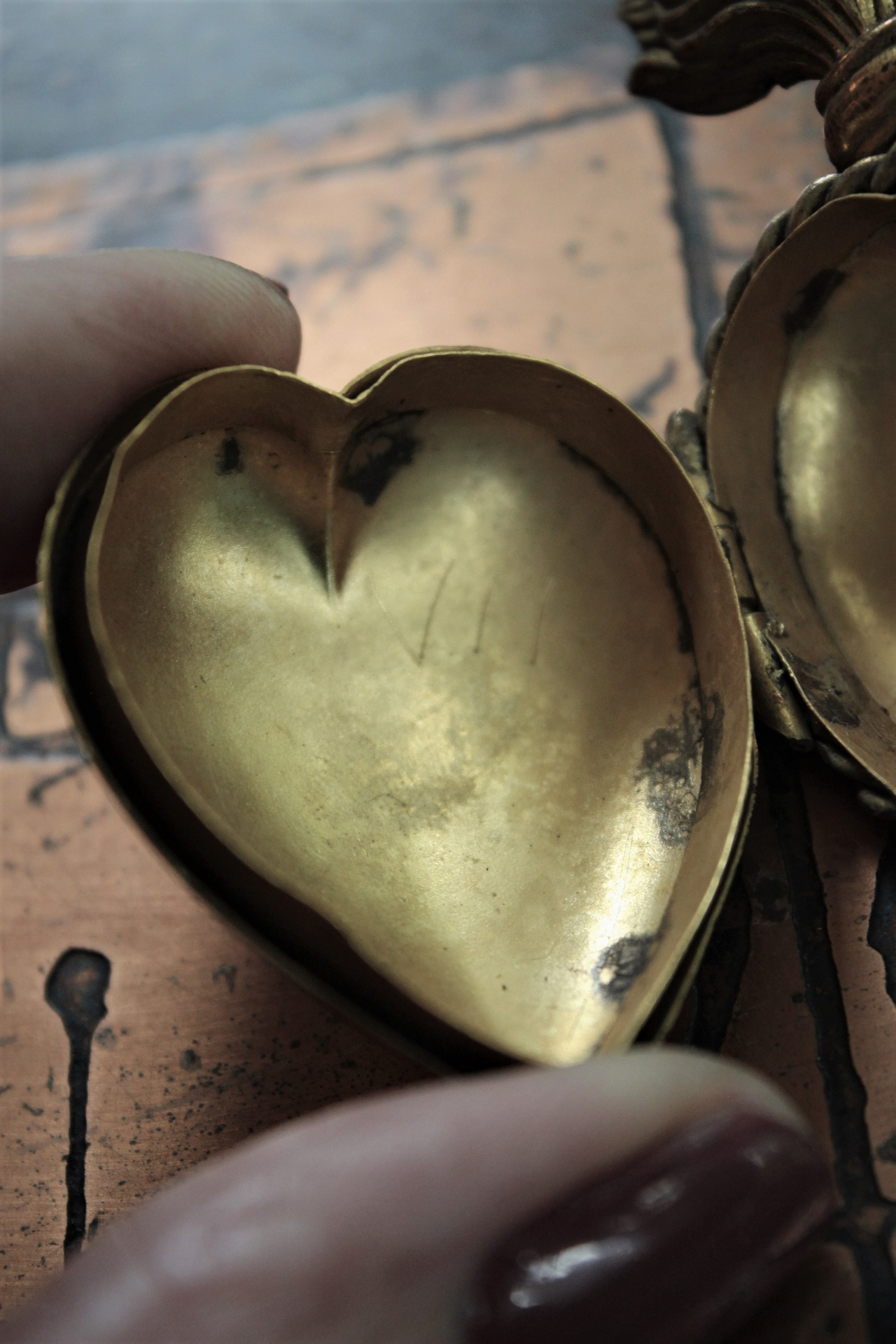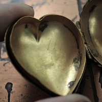 I was so fortunate to be able to purchase a large collection of 15 Ex Votos - and this one is so beautiful! Rare to find one with no etching on front and a perfect size for a small rosary and other tiny sacred pieces - even prayers and blessings. There is a twisted rope border around the heart - and it opens and closes perfectly. As is expected in these old ex votos, there is an engraved number (VII) inside as shown. There are no dents or other damage - patina of course!