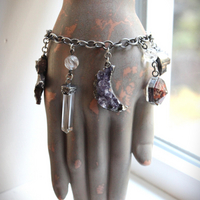 Bezel Set Amethyst Point Cluster Crescent Moon