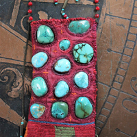 Handstitched Antique Gypsy Lambani Textile Pouch inset with old turquoise cabochons- perfect for eyeglasses or other small necessities!